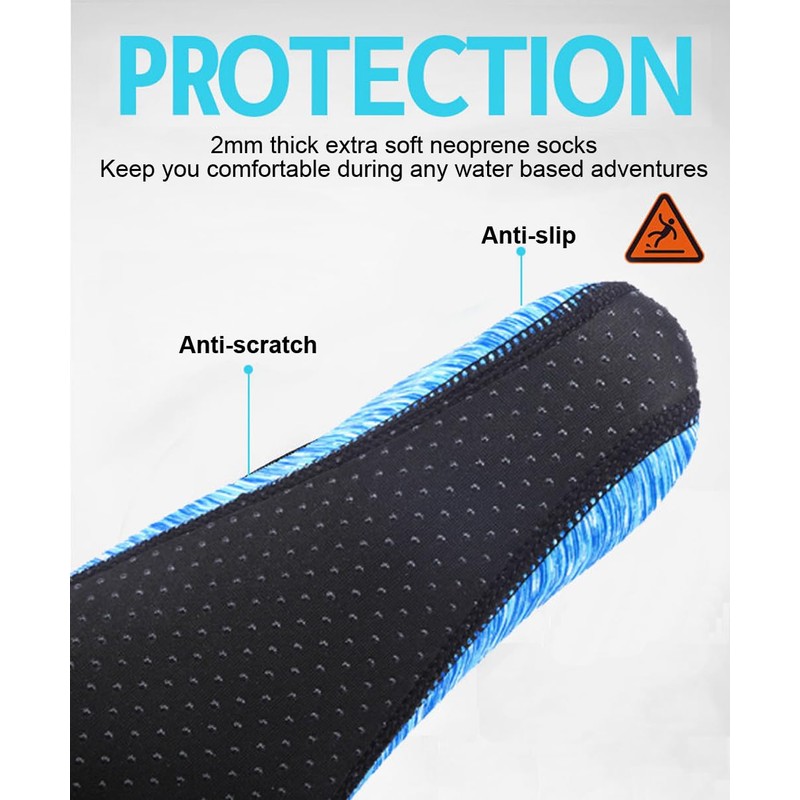 - Protect Your Feet - Our surf booties are 2mm thick, extra soft neoprene socks will help keep you comfortable during any water based adventures. These dive boots provide great insulation for cooler waters and great proctection for your soles, keep your feet from sharp rocks, sea shells, coral and jelly fish stings.