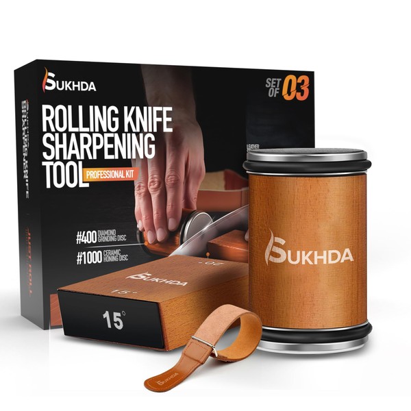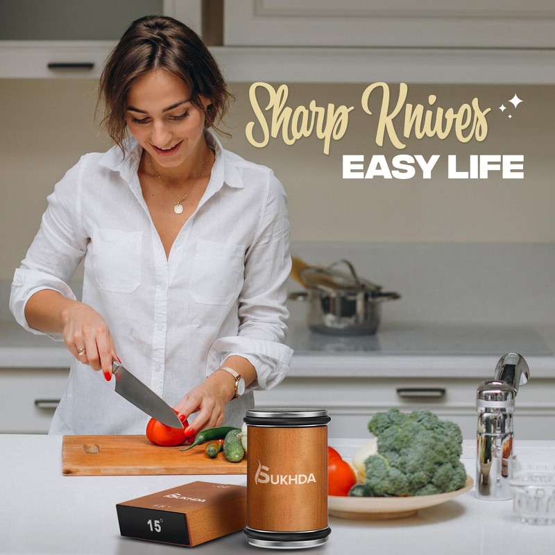 - 【𝐔𝐥𝐭𝐢𝐦𝐚𝐭𝐞 𝐑𝐨𝐥𝐥𝐢𝐧𝐠 𝐊𝐧𝐢𝐟𝐞 𝐒𝐡𝐚𝐫𝐩𝐞𝐧𝐞𝐫】Achieve factory-level sharpness in minutes with the SUKHDA Ultimate Rolling Knife Sharpener, designed for kitchen knives, perfect for chefs and home cooks alike.