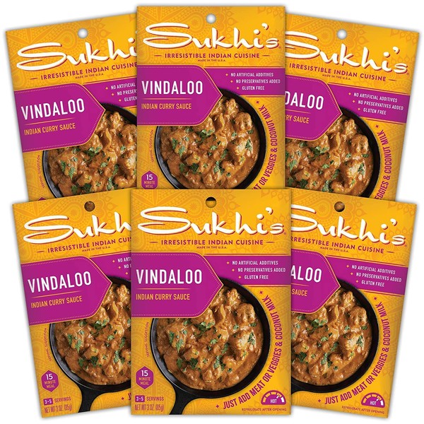 Sukhi's Gluten-Free Indian Sauce, Vindaloo Curry, 3 Ounce (Pack of 6) (packaging may vary)