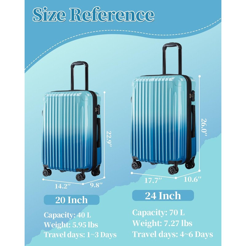- 【EXTRA EXPANDABLE SPACE】Suitcase can be extended by zipper for extra space, which can increase the capacity by 20%, our luggage providing extra space for storing souvenirs and leaving you with no regrets on your trip.