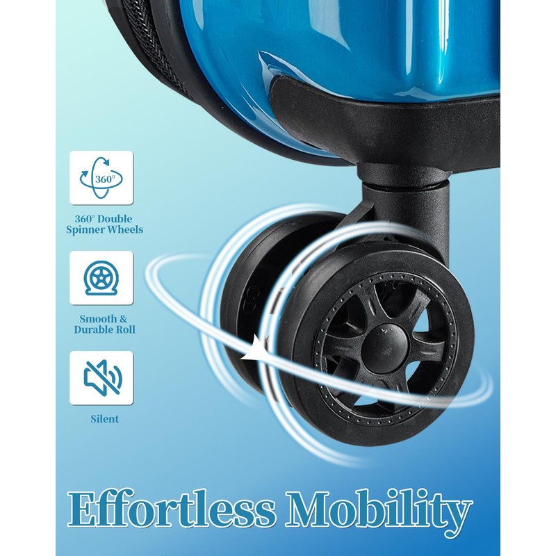- 【360° DOUBLE SPINNER WHEELS】Luggage is equipped with double spinner wheels, which are very easy to maneuver and allow for 360° freedom of movement, allowing you to glide effortlessly through your travels.