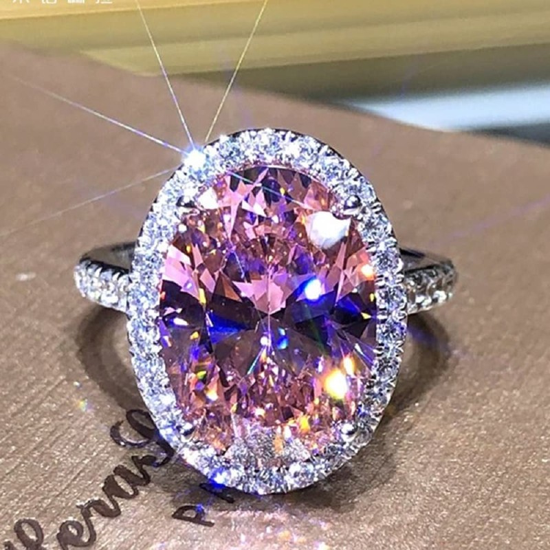 SUKKCCNO S925 Silver Goose Egg Pink Diamond Ring AAA Cubic Zirconia Ring Pink Pigeon Egg Proposal Ring (Size 8)