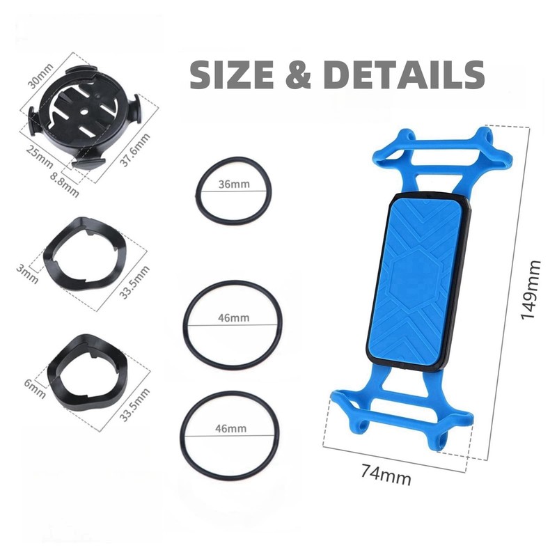 SUKOUSRAM Bicycle Phone Mount, Silicone Handlebar Phone Holder with Bracket, Universal Bike Mount (Blue)