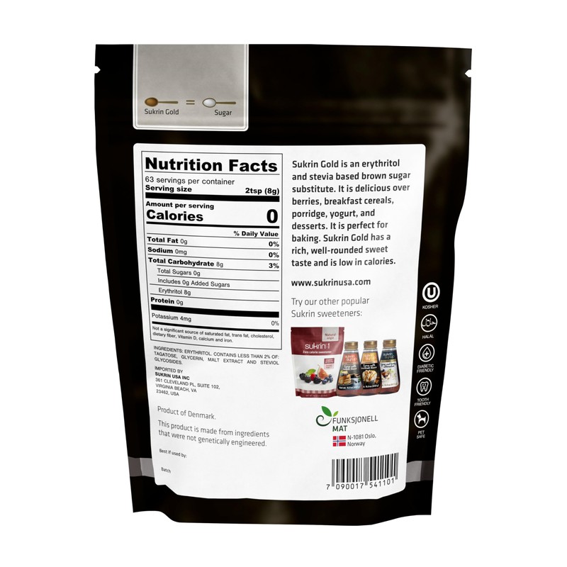 Sukrin Gold - Natural Brown Sugar Alternative - No Calorie Sweetener for Keto, Low Carb and Diabetic Diets - 1.1 lb Bag (1 Pack)