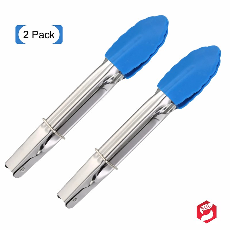 SUL Premium Stainless Steel Kitchen Tongs Non Stick for Grilling Frying with Silicon Tips for Cooking, Serving, Barbecue, Buffet, Salad, Oven use (Size – 7 inch /18cm) 2 Pack- Blue