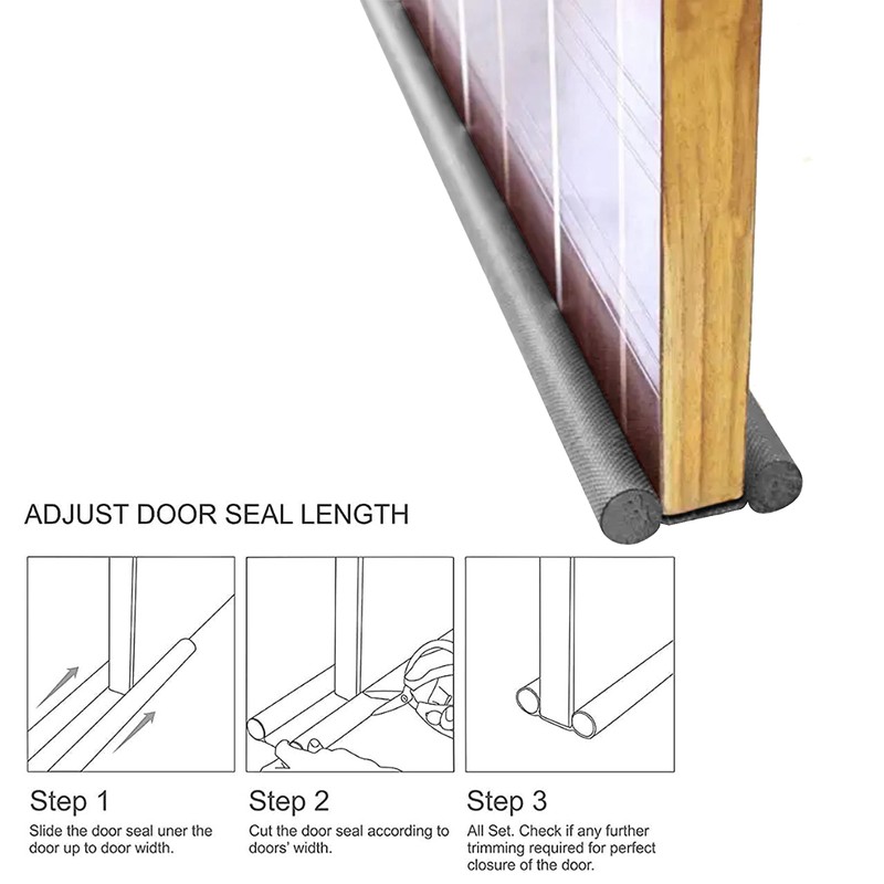 - 👉🏻 Easy Installation - Double sided draught excluder You don’t need to use tape or nails to install this door draft stopper. Twin door draft stopper is super easy to assemble universally to most doors without adhesion required. Double sided draught excluder Measure the size of your door and cut the length down to fit the door or window.