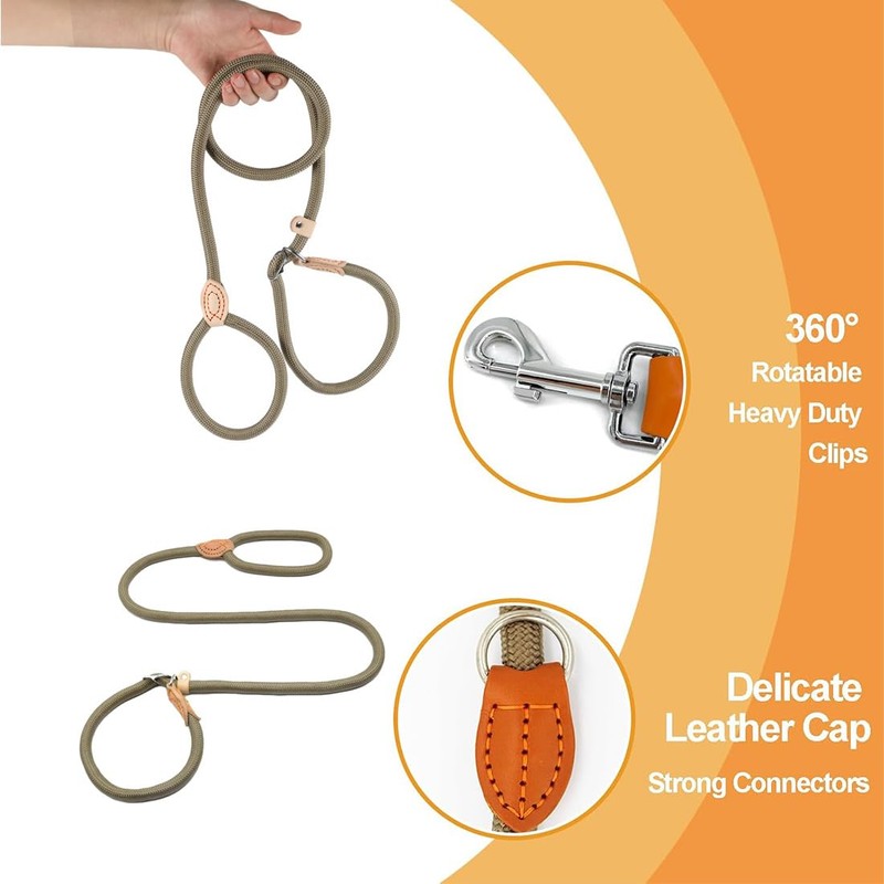 Adjustable dog lead: the length of the adjustable loop training lead is approx. The length is approx. 150 cm / 59.06 inches and the diameter is 0.6 cm / 0.23 inches. The circumference is very large and can be adjusted freely, long enough for walking, hiking and training your dog.