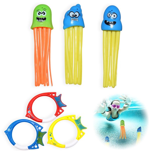 - 【Perfect Set for Underwater Adventures】: Dive into a new world with our SULIUDAJI toy set. Includes 3 colourful diving rings and 3 fascinating octopus toys that will delight your child. The rings are 20 cm long and 14 cm wide and provide hours of fun in the water while promoting motor skills.