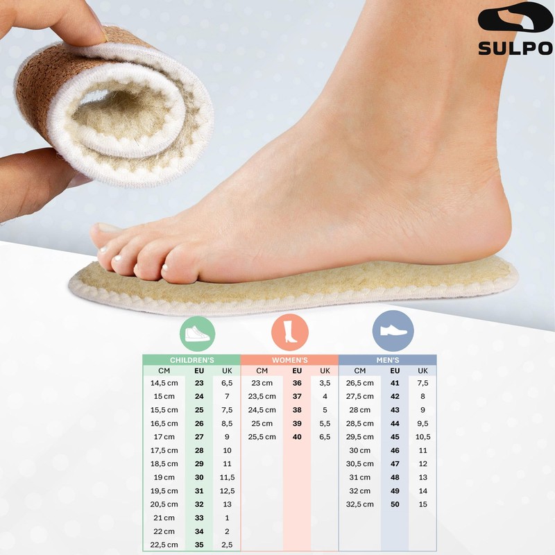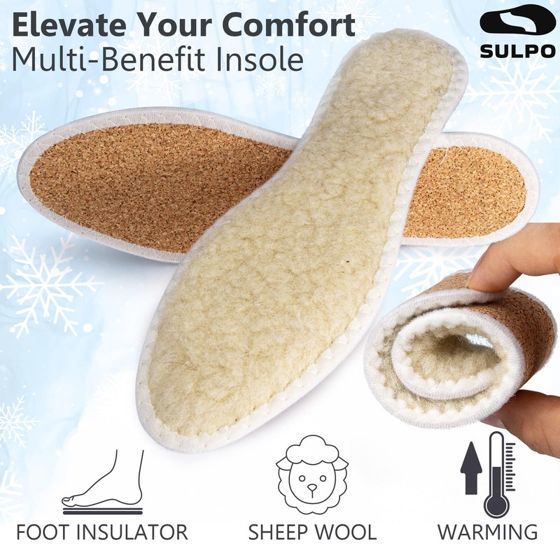 SULPO 2 Children's Pairs Winter Insoles - Soft, Warm Insoles Made from 2% Real Sheep's Wool - Excellent Shock Absorption Thanks to Natural Cork - Thick Thermal Insoles with Reinforcement
