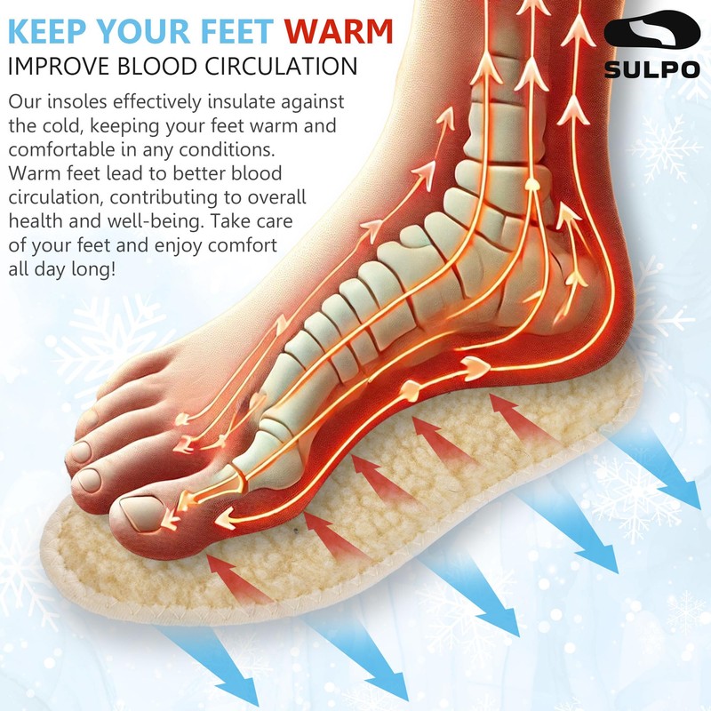 - No more cold feet – do not let the winter weather stop you. These insulating soles are designed to keep your feet and toes wonderfully warm at all times!