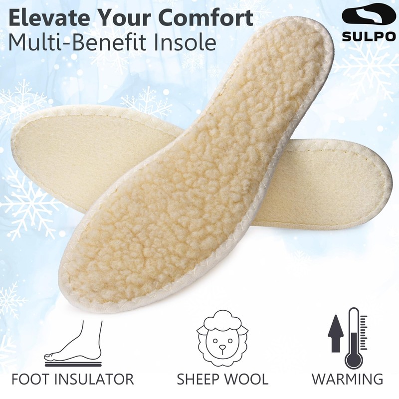 SULPO 2 Pairs of Insoles with Sheep's Wool - Warm Insulating Winter Wool Shoe Insoles - Thermal Shoe Insoles with Natural Sheep's Wool - Insoles for Winter Shoes - 37