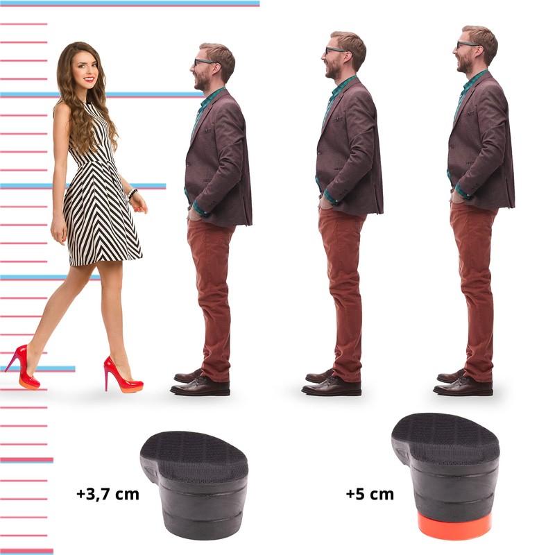 - Adjustable height – Our sole consists of 2 parts, through which the height can be varied. Use the black insert alone or use the red heel to ensure maximum height.