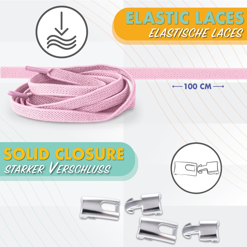 SULPO Flat Shoelaces without Tying - Buckle Closure - Laces Quick Release - Elastic Shoe Laces - Rubber - Shoelaces - Laces for Children and Adults, Baby Pink
