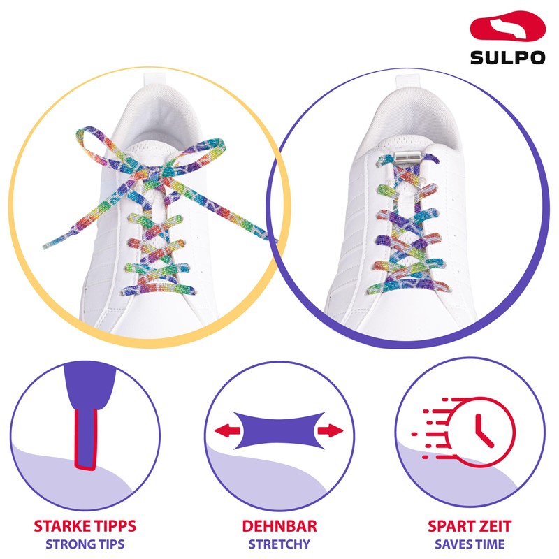 SULPO Flat Shoelaces without Tying - Colourful Quick Release - Elastic Shoe L...