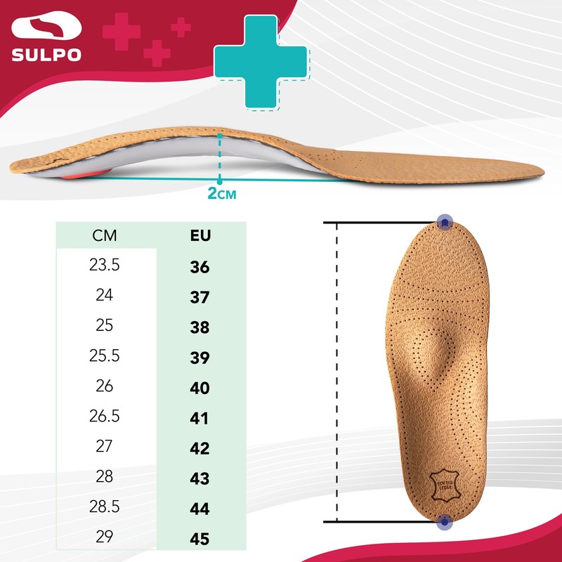 SULPO Insoles - Profiled Leather Insoles Shoes Men & Women with Metatarsal Support, Arch Support, Soles for Shoes Size 42
