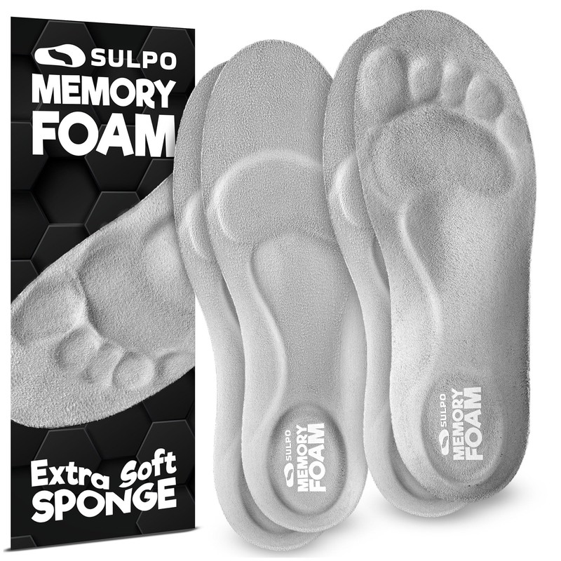 SULPO Memory Foam Insoles - Soft Shoe Insoles, Ergonomic Support and Comfort for the All Day 2 Pairs, Size 41-42