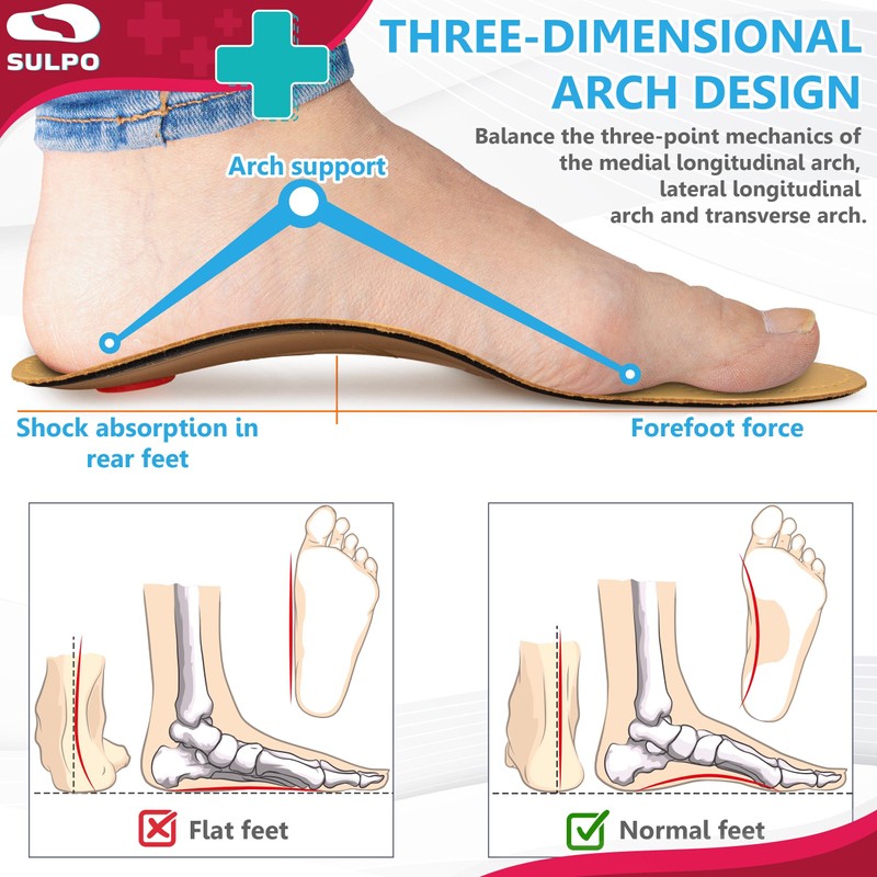 - Ergonomic design: the soles for shoes are ergonomically designed to support the natural shape of the foot. These orthopaedic insoles are ideal for everyday use, especially for people with flat feet.
