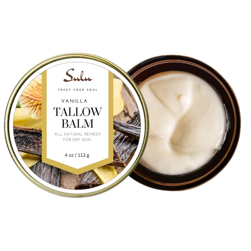 SULU ORGANICS Natural Whipped Tallow Balm for Face and Body, Natural Moisturizer made with Grassfed Beef Tallow- 4 oz/113 g (Vanilla)