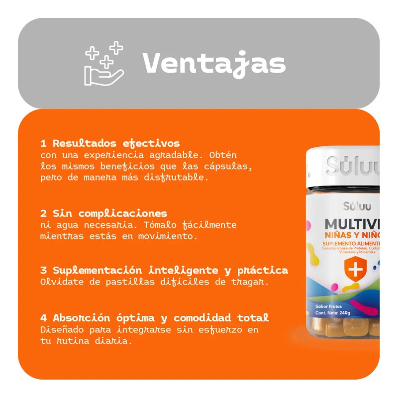 ¡Dulces beneficios para los más pequeños! Multivit Niños ofrece vitaminas y nutrientes esenciales en un formato práctico y delicioso.