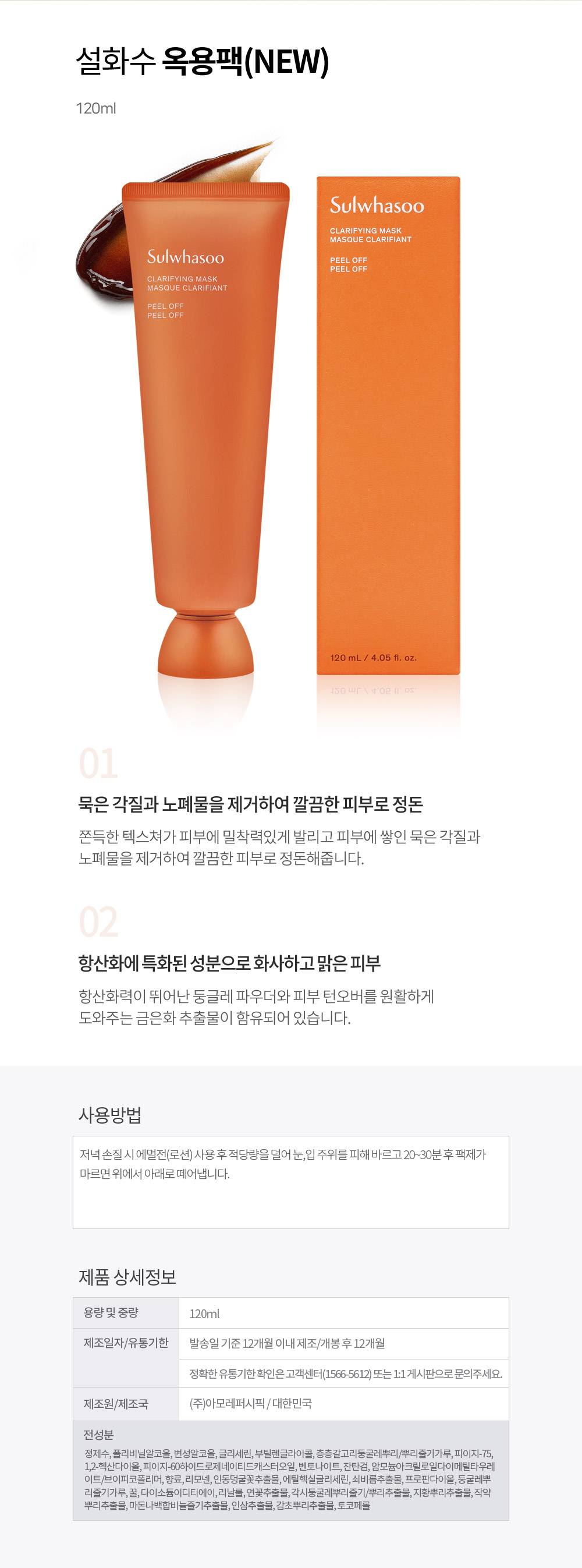 설화수 옥용팩 120ml 각질 케어 필오프팩