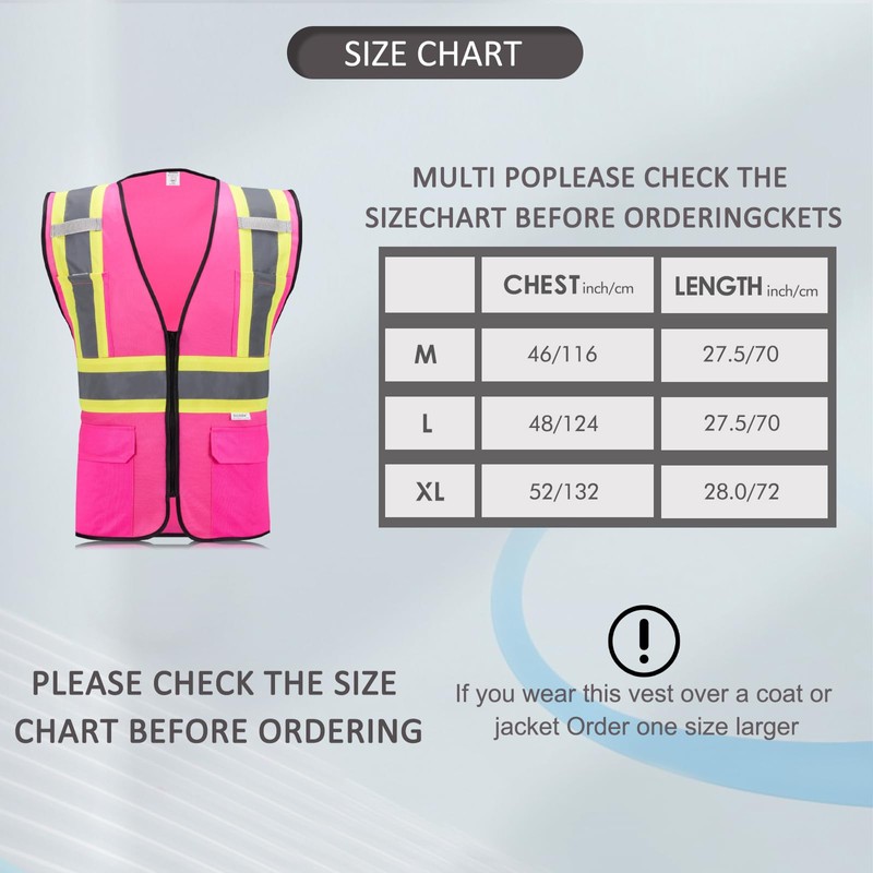 • STAY SAFE WITH GREAT 360 DEGREE VISIBILITY: Pnk safety vest has 2" width vertical and horizontal reflective strips for maximum visibility in all conditions.