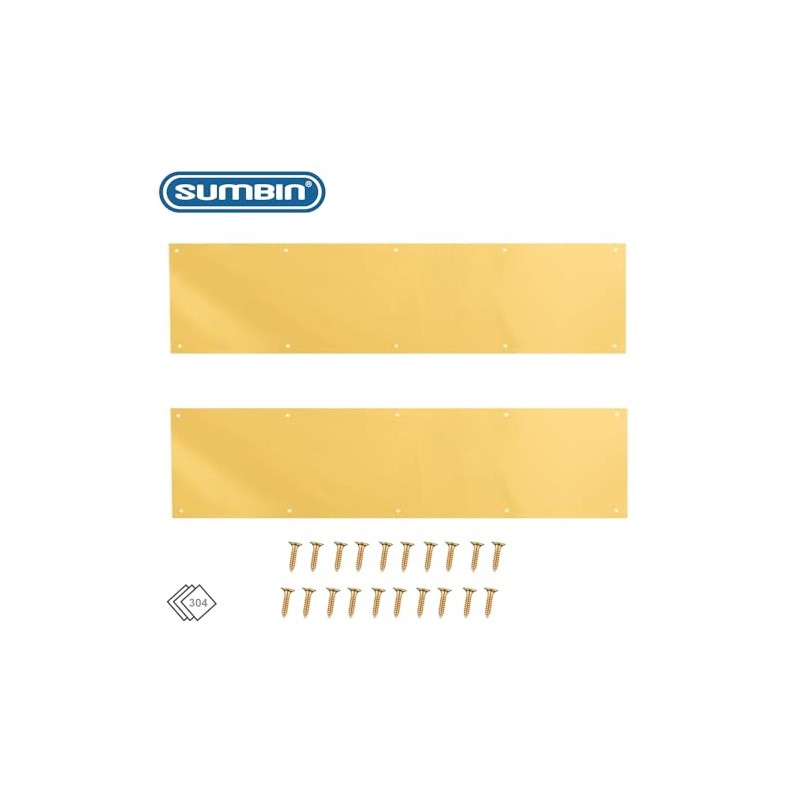 SUMBIN 2 Sets Stainless Steel Door Kick Plate Plate Protection Plate, 6" x 34" Size, for Front or Back Door in Satin Brass Finish