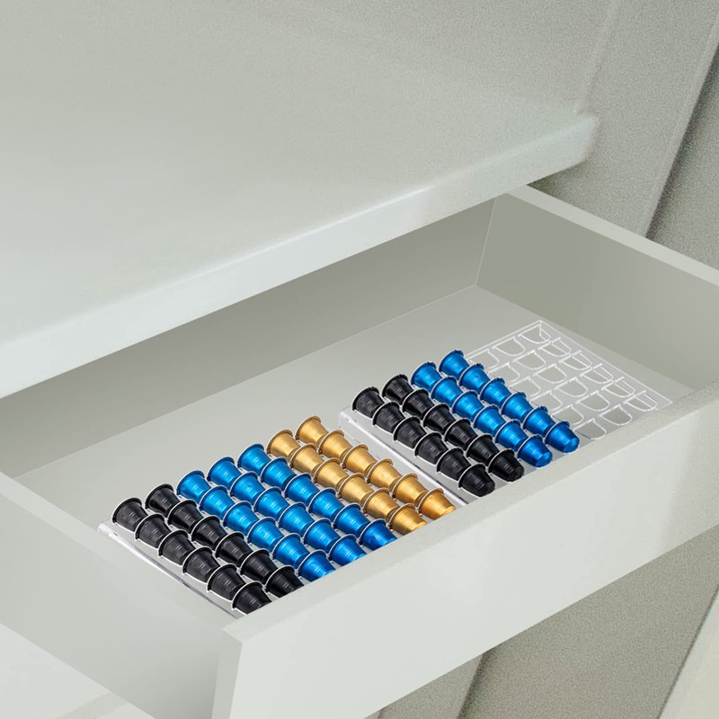 Sumerflos Coffee Pod Storage Organizer Tray Drawer, Holds 42 Capsules Compatible with Nespresso original pods Insert for Kitchen Home Office Capsule Drawer Capsule Holder and Organizer - Clear