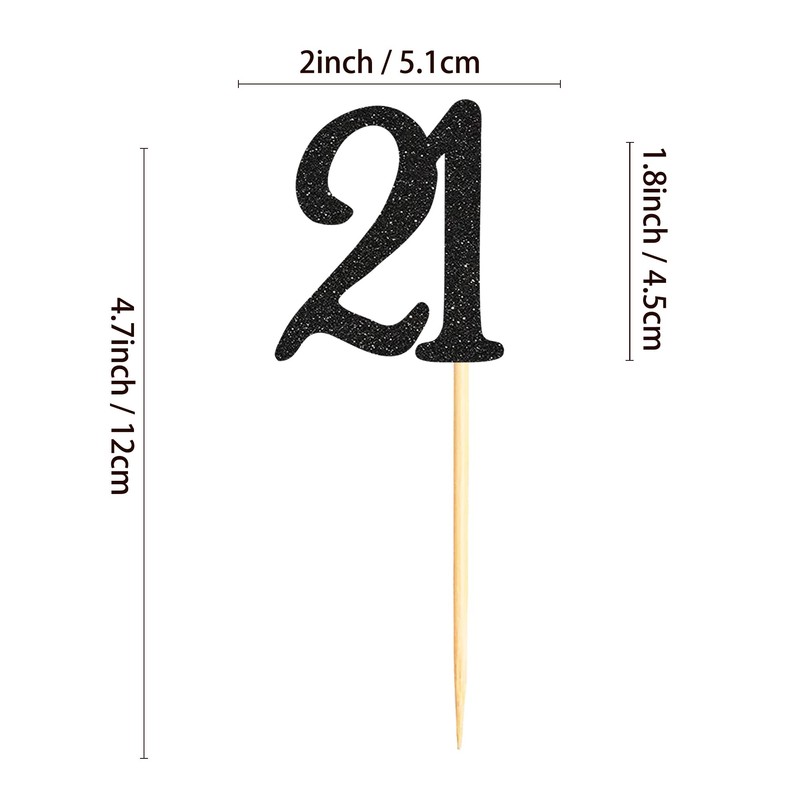 Sumerk 24PCS 21 Cupcake toppers Black Glitter 21th Birthday Cupcake Picks Anniversary Party Decorations