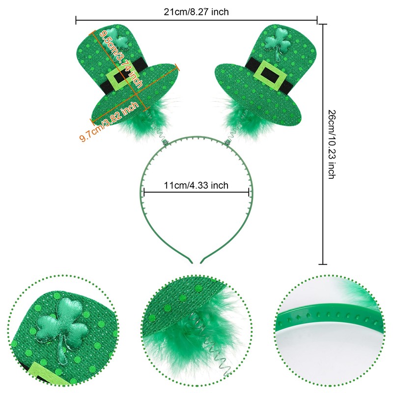 - 【Attractive St. Patrick's Costume Accessories】Made from premium plastic material, the St. Patrick's Day Party Favors Set ensures durability and longevity. The Shamrock Headbands and Shamrock Bead Necklaces feature a vibrant green color and eye-catching design, making them perfect St. Patrick's Day decorations for any party
