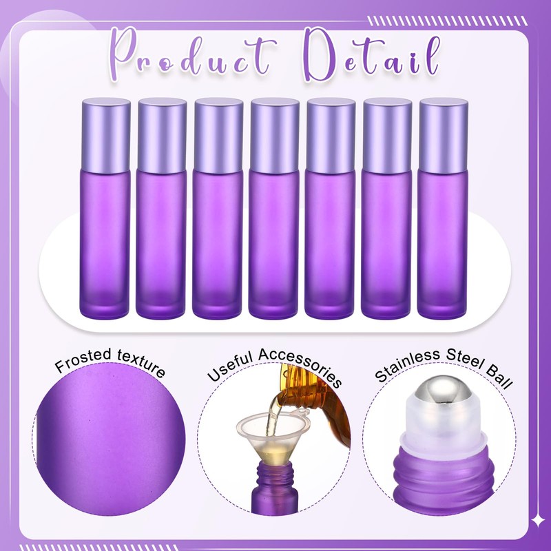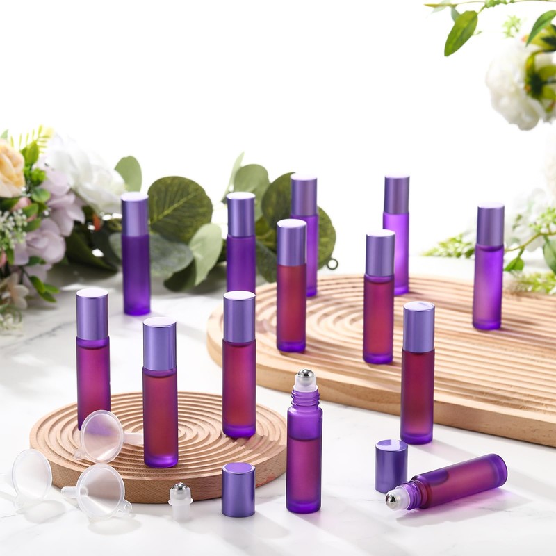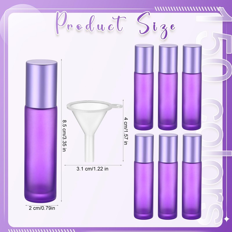 Sumind 150 Pcs Essential Oil Roller Bottles 10 ml Glass Empty Roll on Bottles with Stainless Steel Balls Leak Proof with 5 Funnel for Travel Essential Oil (Frosted Purple)