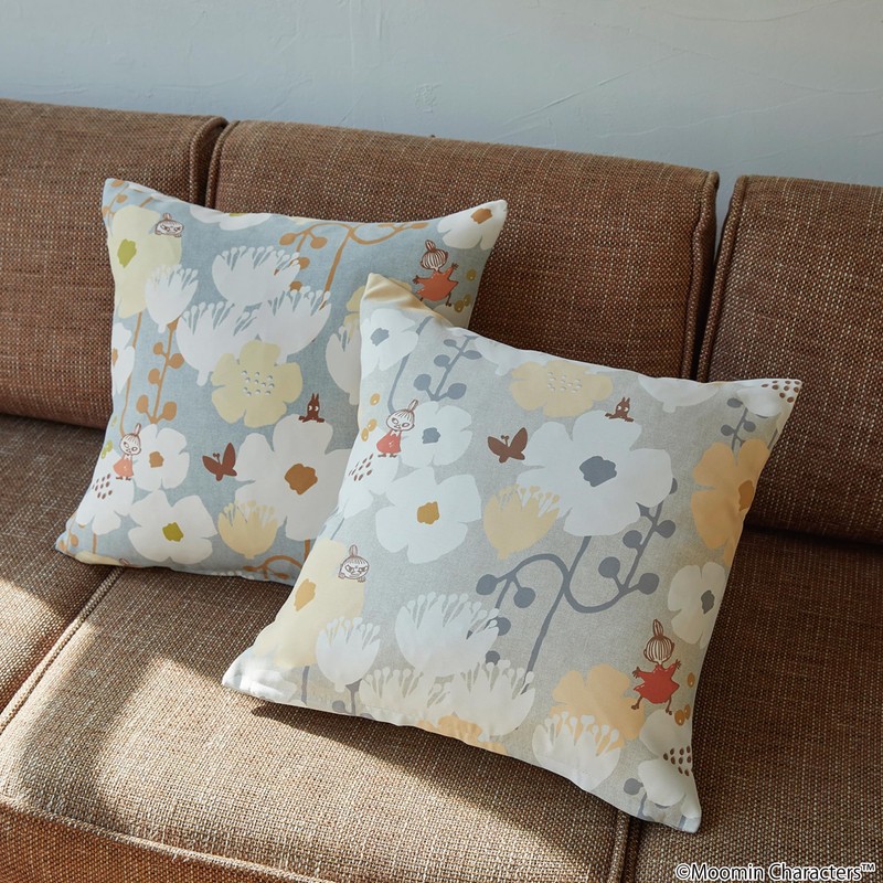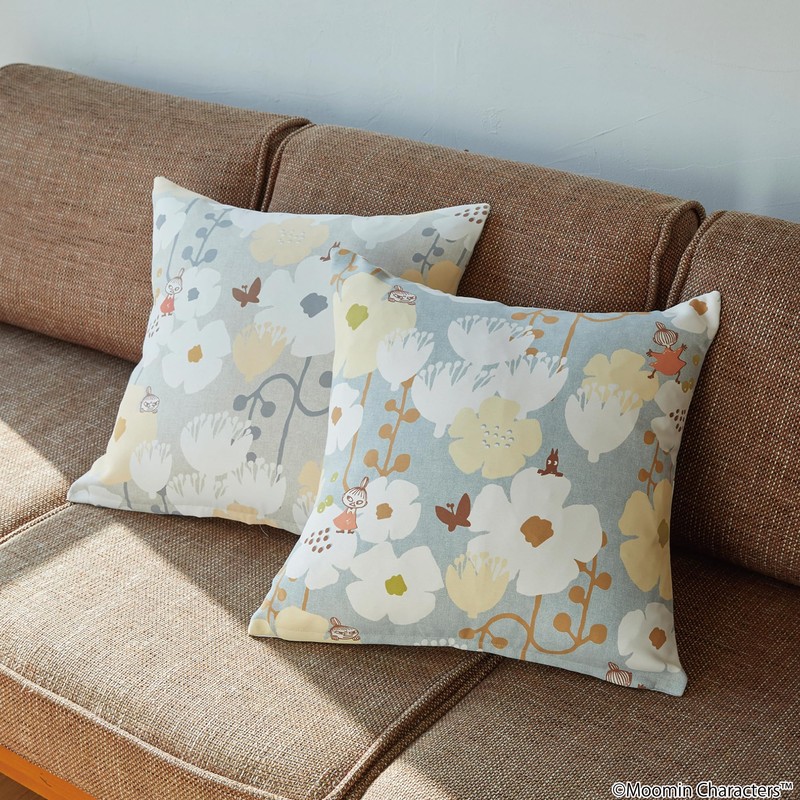 Suminoe A035C Cushion Cover, Gray, 17.7 x 17.7 inches (45 x 45 cm), Moomin, Tiny Flower, Washable, 1 Piece