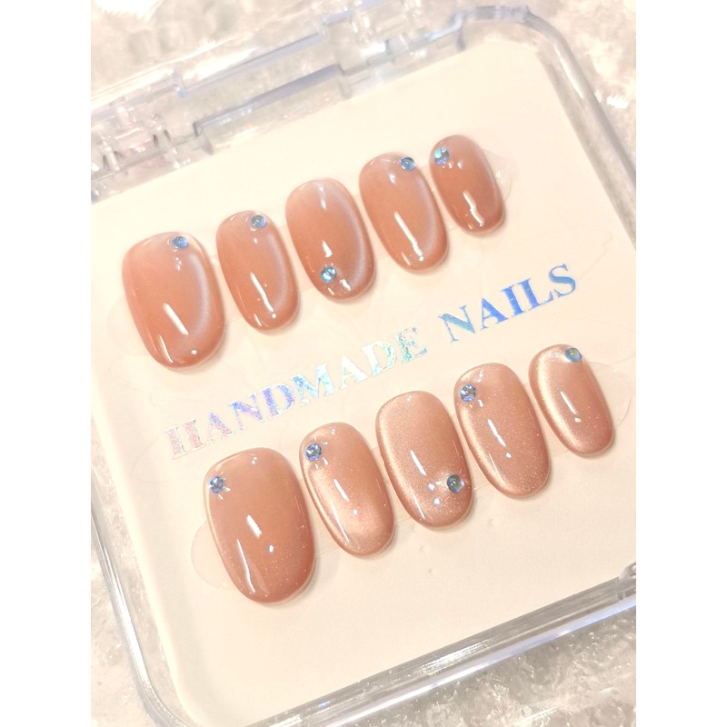 - ELEGANT DESIGN: Nude adorned press-on nails with small blue rhinestone accents. A fresh and elegant design featuring a stunning cat eye effect