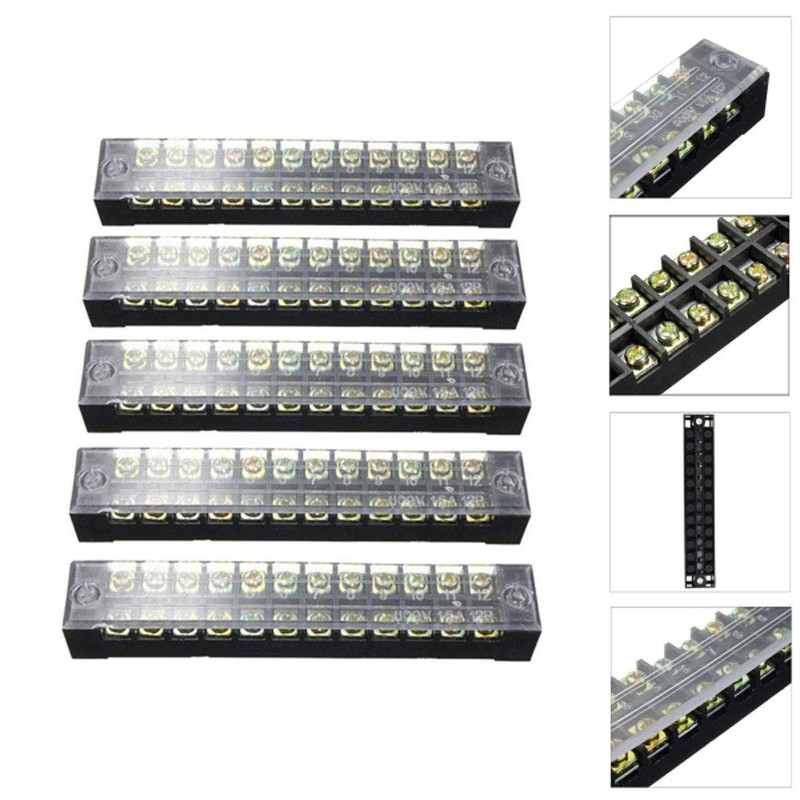 Summer-Home 5Pcs 15A 600V 12 Position Covered Dual Row Screw Terminal Barrier Strip Block Connector Bar