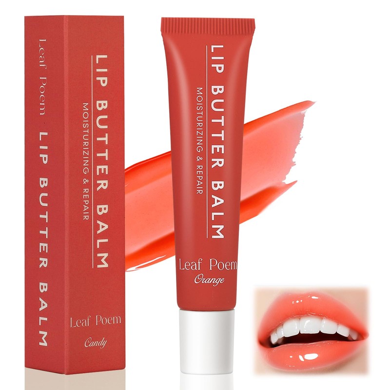 Summer Lip Balm with Butter, Lip Butter Balm, Lip Butter Balm for Instant Moisture, Shine and Hydration, Nourishing Lip Mask with Plant Extract, Shiny Lip Oil (Orange)