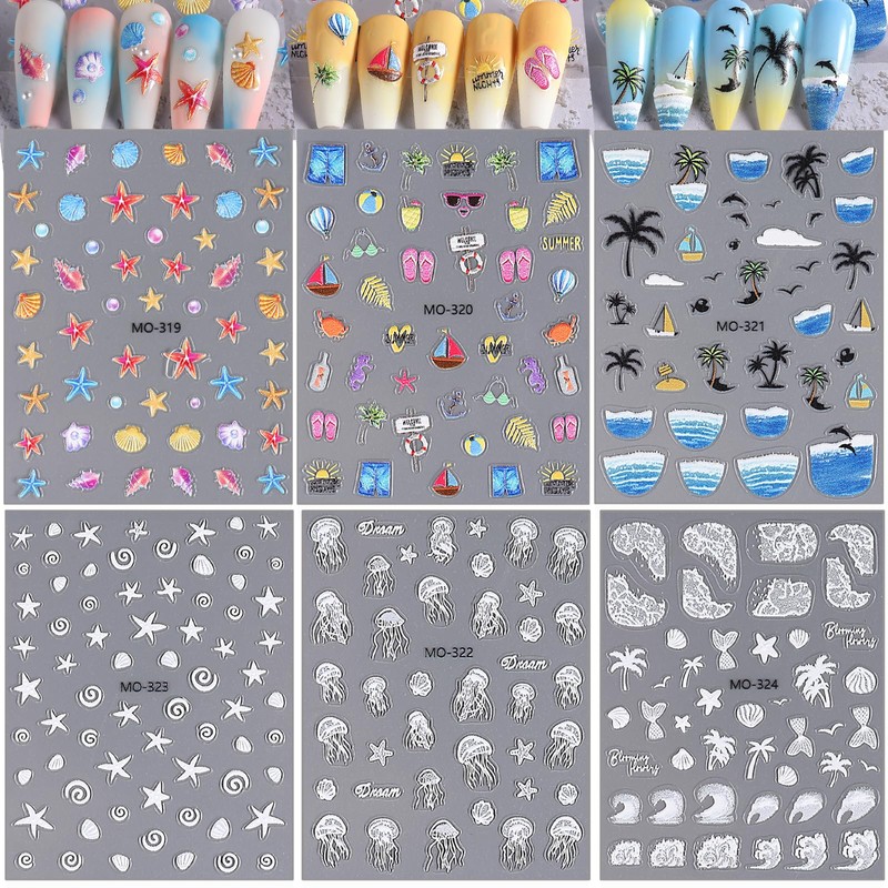 - Package Contain:You will get 6 sheets Ocean nail stickers, large number of different patterns for you to use and replace in daily life, Raised print texture, which is suitable for most natural or fake nails accessories. Nail enthusiasts can't miss it, various charming patterns bring you a different mood.