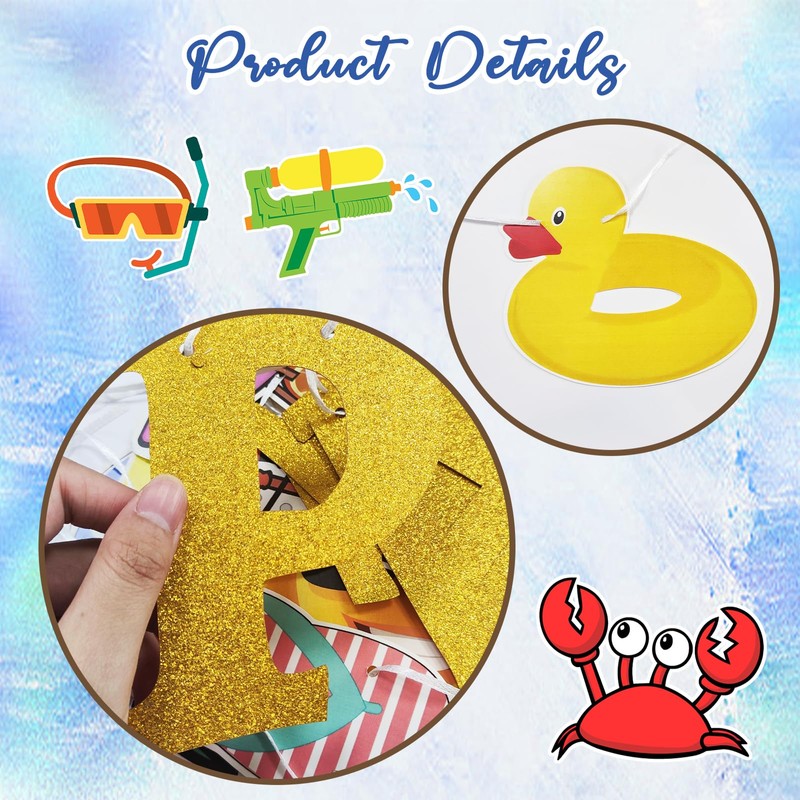 - What you get - 1 set of glitter pool banners with pool party patterns, includes three separate strands, one says "POOL" banner with sun and beach ball pattern and the other says "PARTY" banner with tropical drink patterns, perfect for your summer holiday parties.