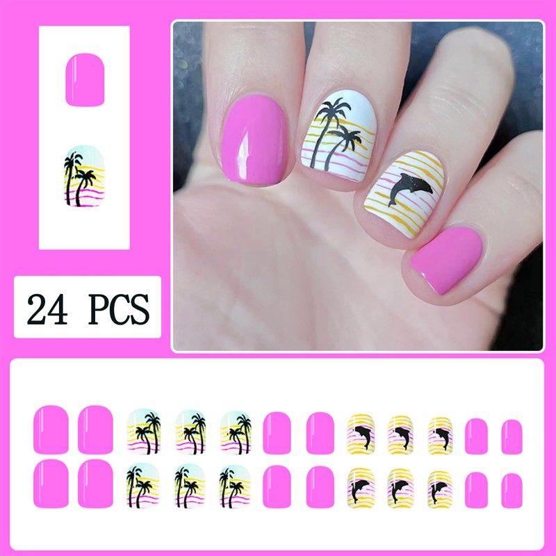 - Packaging includes:You will receive 24 summer palm tree nails, 24 jelly glue, 1 small crystal stick, alcohol bag, nail file, no additional tools required