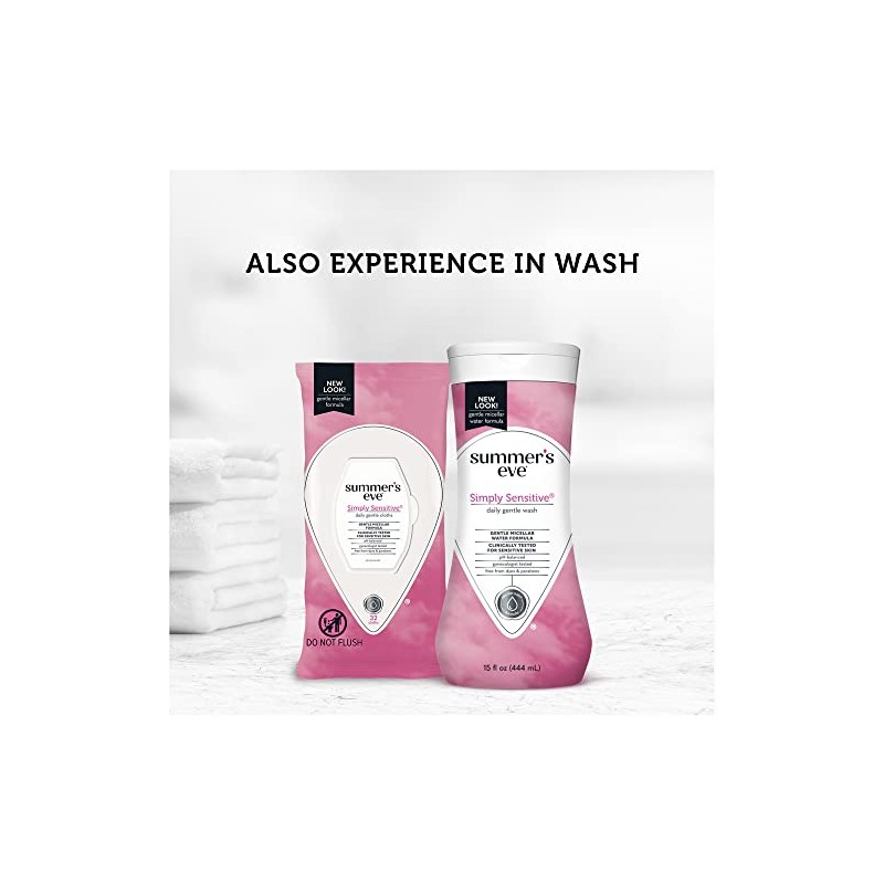 - Summer’s Eve Simply Sensitive Daily Gentle Feminine Wipes removes odor-causing bacteria
