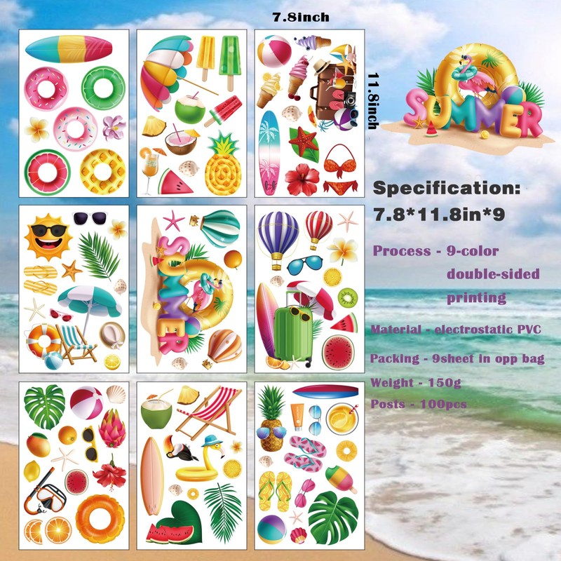 - 📦 Complete Summer Decor Kit:Includes 9 large clings (7.9x11.8 in each) . If any issue, contact us for replacement. Make every window a summer celebration!