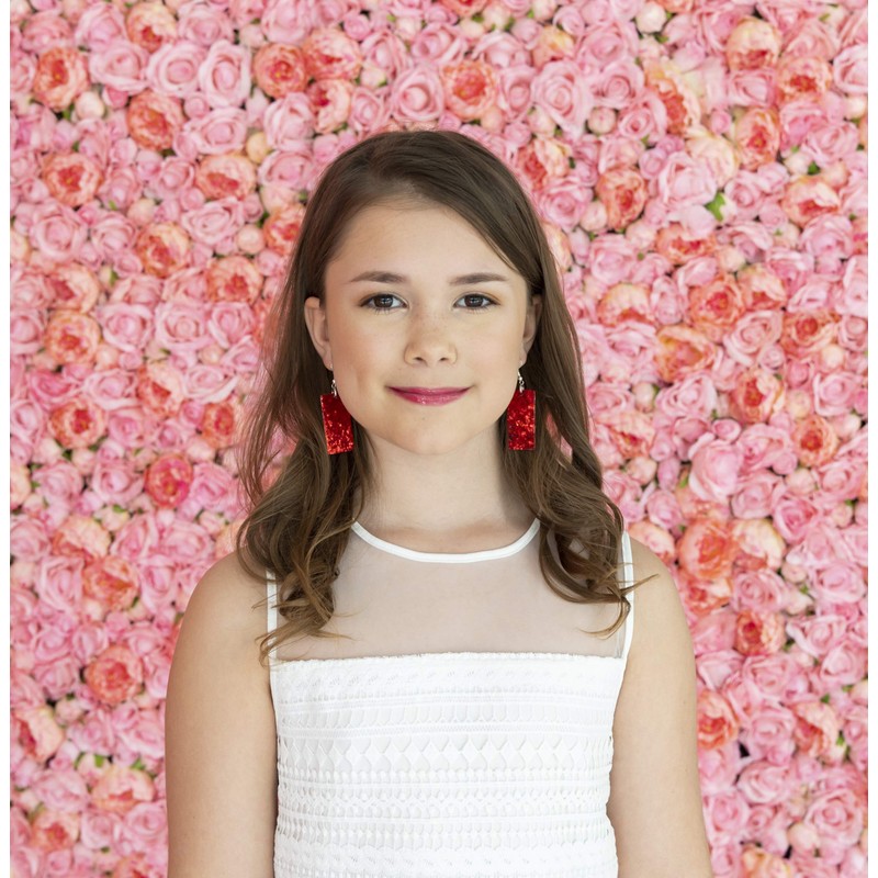 Summerfield Collection Silver-tone Glitter Faux Leather Large Rectangle Dangle Earrings (Red)