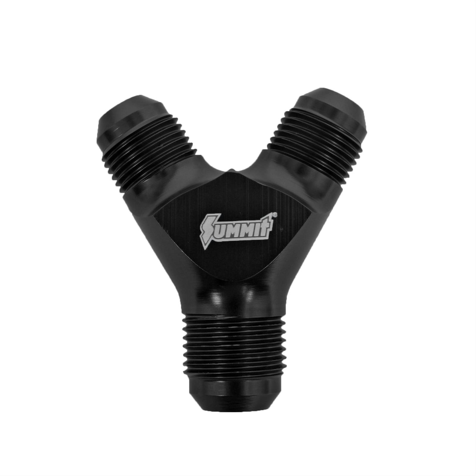 Summit 220110B Fitting Y-Block Black -10 AN Male Inlet -8 AN Male Outlets EA