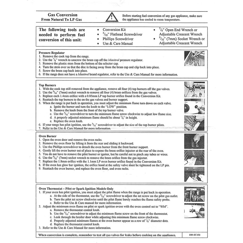 Allows you to convert select Summit gas ranges to propane connections