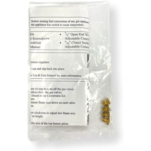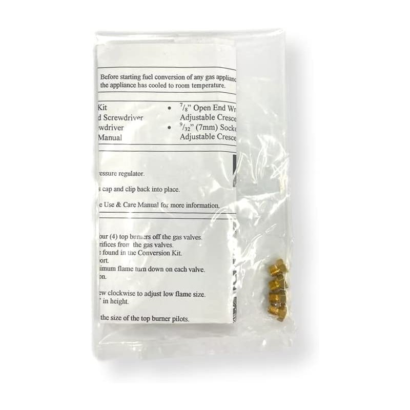Summit Appliance KIT LP Conversion Kit; Convert Summit Open Burner Battery Start Ranges into LP Gas; Works with Summit Ranges that Utilize the Battery Ignition System; Kit Contains 4 Bronze Adapters