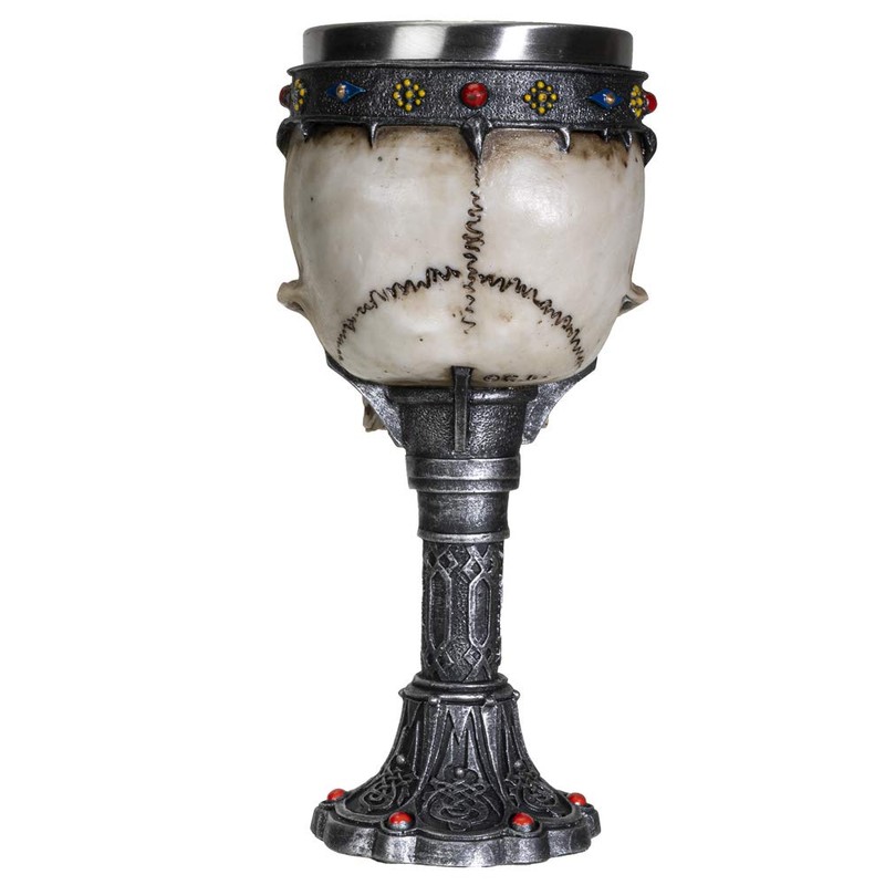 SUMMIT COLLECTION Crowned Gothic Ossuary Skull Wine Goblet Removable Stainless Steel Insert Stemware Sacrifice Ceremonial Skull Wine Goblet 190ml Drinkware Halloween Decor