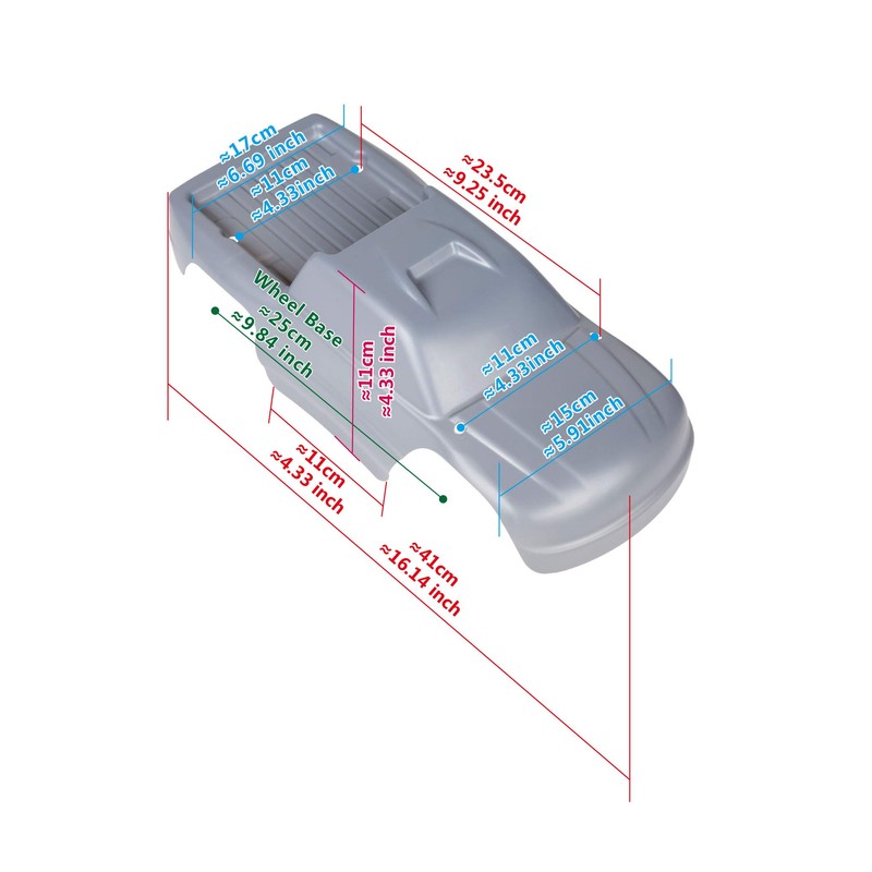 - Body already painted, holes drilled for Stampede. If you mount this to other models, you might need to drill new holes and trim body a little.