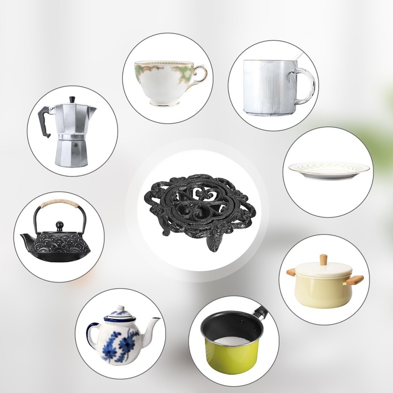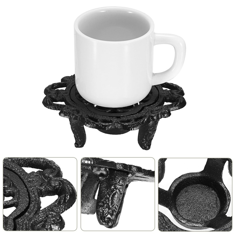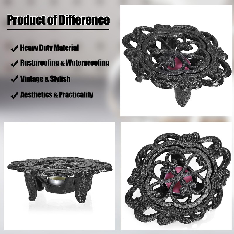 Sumnacon Cast Iron Teapot Warmer Dish Cups Heater Decorative Trivet with Tealight Holder - Rustic and Heavy Duty Tealight Candle Holder Stands - Elegant Food Warmer for Tea, Coffee, Milk