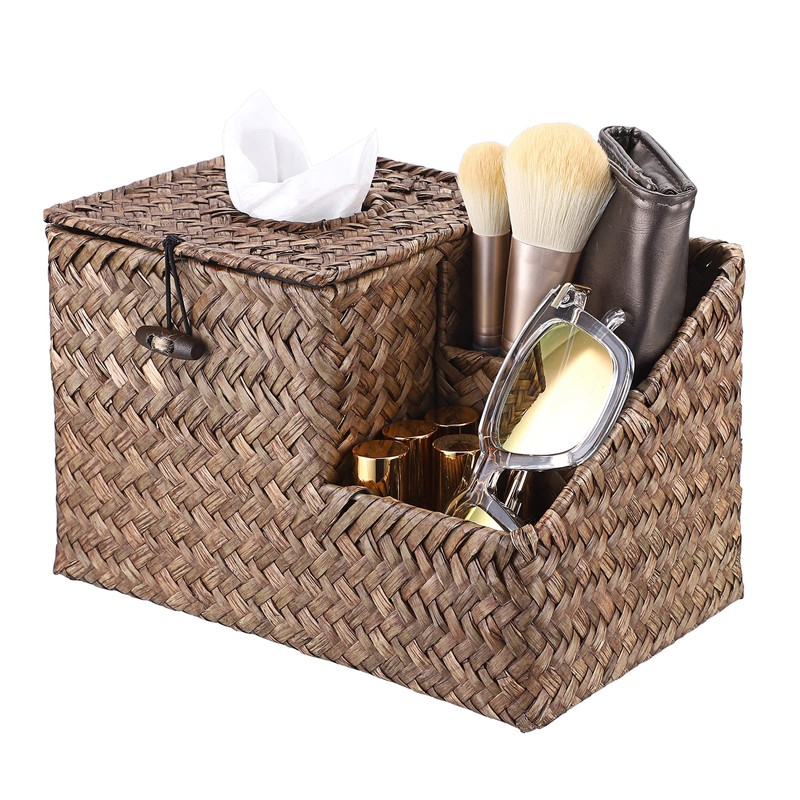 1 x Square Seagrass Tissue Box Cover with Side Two Organizer