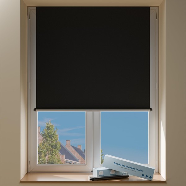 Sumobaby Blackout Curtains Portable Roll-Up,No Drill Blackout Roller Shades with Heat-Resistance Magic Tapes,100% Blackout Window Cover,Thermal Insulated Blinds for Windows(W35” X L72”,1 Panel,Black)