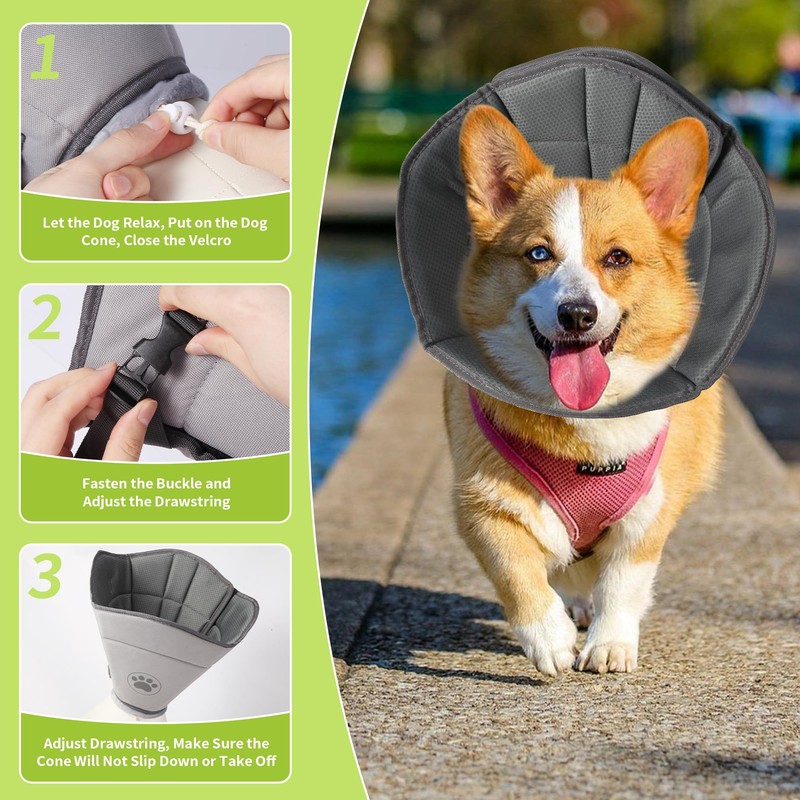 SUMREA Soft Dog Cone for Small Medium Large Dogs After Surgery, Comfy Cone for Dogs, Adjustable Dog Cone Collar to Stop Licking, Elizabethan Collar for Pets(Grey,Medium)