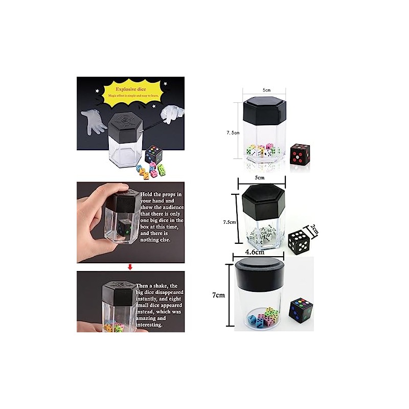 sumrica Magic 3 Pieces Explode Explosion Dice Easy Magic Tricks for Kids Magic Prop Novelty Funny Toy Close-up Performance Joke Prank Toy(Black 7.5cm x 5cm)